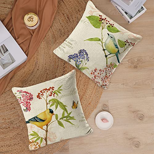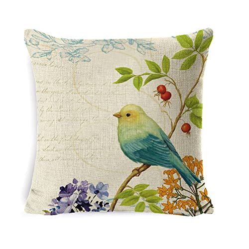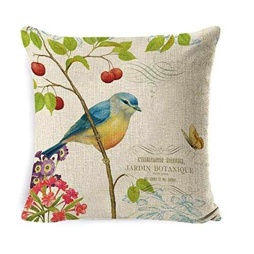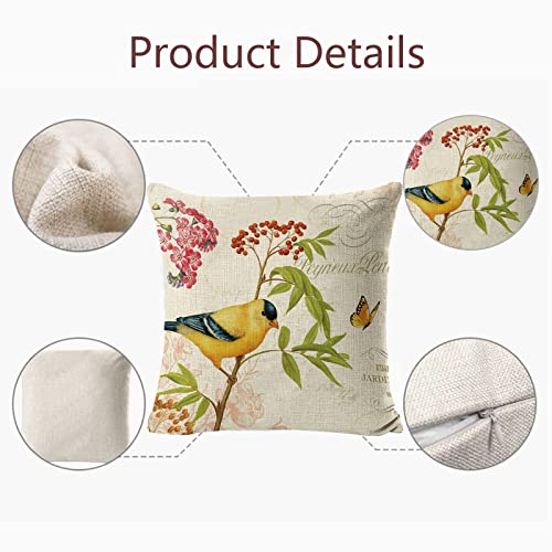scalingscal 4er Set Kissenbezüge 45 x 45 cm Blumen Vögel Leinen Dekorative Kissenhülle Quadratische Zierkissenbezüge Dekokissen Abdeckung für Sofa Auto Schlafzimmer Wohnzimmer Zuhause Stuhl Dekor