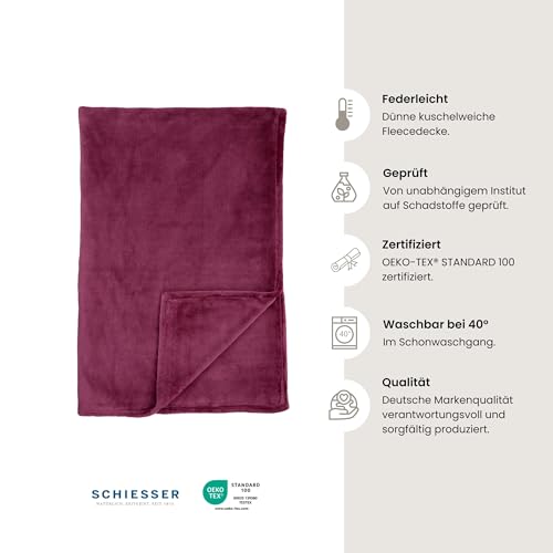 Schiesser Wohndecke Mia | Leichte Fleece-Kuscheldecke | Für Couch, Sofa & als Tagesdecke für Einzelbetten | Schadstoffgeprüft | Oeko-TEX | 150×200 cm | Beere