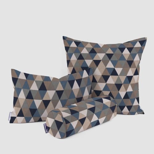 SCHÖNER LEBEN. Kissenhülle Halbpanama Leinenlook Dreiecke blau grau, Größe:40x40cm (HxB)