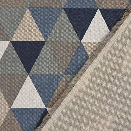 Du erhältst eine Kissenhülle aus Halbpanama-Gewebebindung bedruckt mit Dreiecke-Motiv im Leinenlook