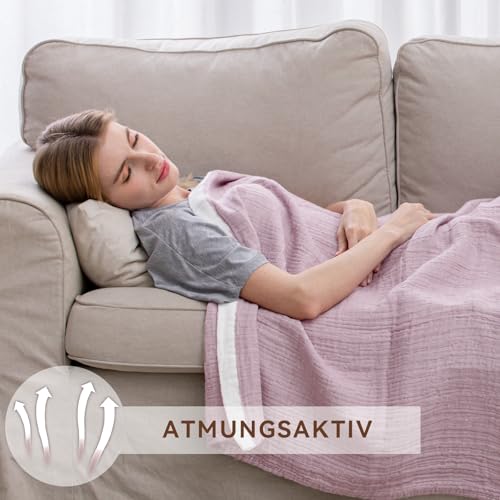SE SOFTEXLY Kuscheldecke Baumwolle 100%, 4-lagige Weiche Kuscheldecke Musselin Tagesdecke, Bett-Überwurf Sommerdecke Sofadecke Wohndecke für Ganze Saison als Sofaüberwurf Violett Blanket 150x200cm