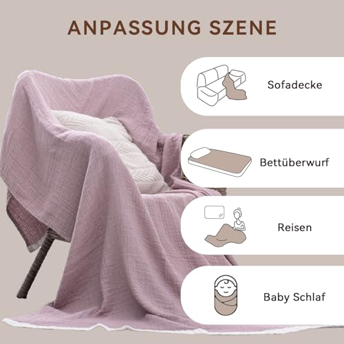 【Super Weich Kuscheldecke Baumwolle】 SE SOFTEXLY Kuscheldecke bestehen aus 100% Baumwolle,4-layer muslin.ultra atmungsaktiv und natürlich temperaturregulierend.Die musselin decke kann für die ganze Saison werden.Das Weben von Tüll macht es leicht, weich, atmungsaktiv und hat eine starke Feuchtigkeitsaufnahmewirkung,damit Sie sich wohl und ruhig fühlen können. Es ist perfekt für das gemeinsame Schlafen mit Kleinkindern.
