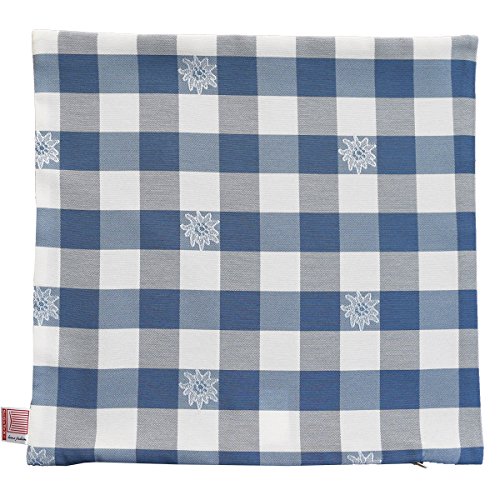 SeGaTeX home fashion 1 Kissenhülle Karo mit Edelweiß blau-weiß 40 x 40cm passend zur Landhaus-Serie Karo mit Edelweiß in Blau