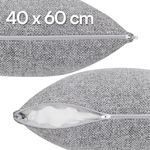Sie erhalten 2 Couchkissen mit Füllung und Bezug in der Größe 40 x 60 cm. Der Bezugstoff besticht durch seine Festigkeit und hochwertige Erledigung und verleiht dem Kissen eine leicht glänzende Oberfläche. Das Füllkissen besteht aus weichen Flocken in einer Stoffhülle und sorgt für optimalen Komfort und ein entspannendes Gefühl. Durch den Reißverschluss lässt sich der Kissenbezug einfach abflauen und in der Waschmaschine bis 30° C reinigen.