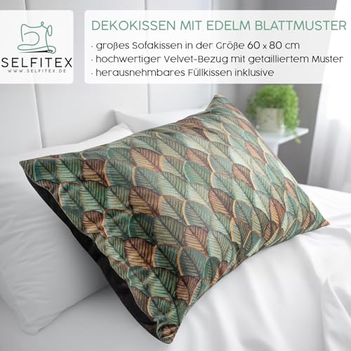 Selfitex großes Dekokissen 60×80 cm, Sofakissen inkl. Füllkissen, kuschelweiches Lesekissen, dekoratives Fernsehkissen mit edlem Muster, Reißverschluss, einfache Reinigung (Scale Leaf)