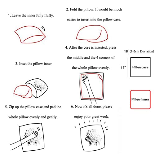 2. Es wird empfohlen, eine Kisseneinlage für ein flauschiges Aussehen zu verwenden. Bitte stellen Sie erschütterungsfest, dass die Einlage biegsam ist und sich in der Mitte biegen lässt, wenn Sie sie einsetzen.