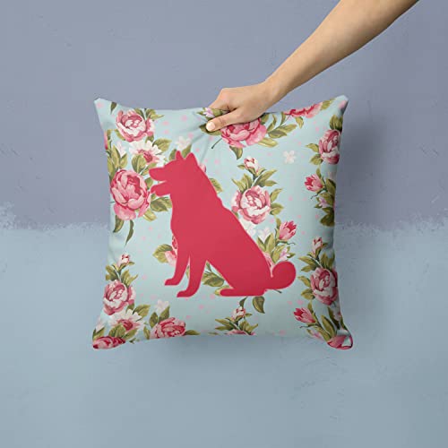Shiba Inu Shabby Chic Blue Roses Stoff Deko Kissen bb1113