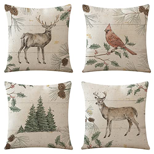 SHUIYAZI Outdoor Kissen wetterfest, Kissenbezug 45×45 cm, 4 Stück Hirsch Vogel kissenbezüge Mit Unsichtbarem ReiBverschluss, Outdoor Zierkissen Couchkissen Garten Dekokissen, Geschenke fur Frauen