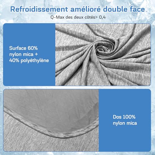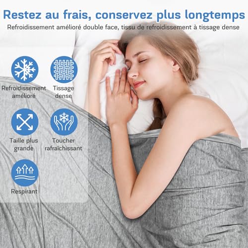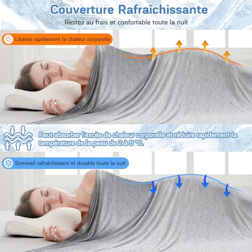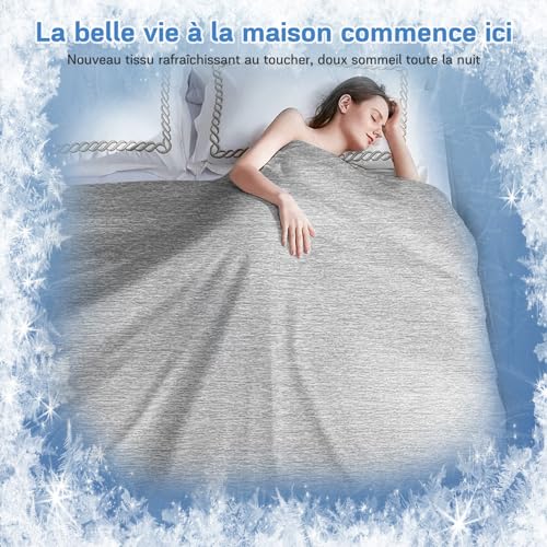 【Kühl und leicht】Erleben Sie optimalen Schlaf mit der Kühldecke. Ausgestattet mit speziellen japanischen Arc-Chill-Kühlfasern reduziert sie die Hauttemperatur sofort um 2 bis 5°C und hält Sie die ganze Nacht über kühl und komfortabel. Mit einem Q-Max-Wert von über 0,4 bietet sie ein 4°F kühleres Emotion und ist 10 Mal atmungsaktiver und saugfähiger als Baumwolle, was sie ideal für Menschen macht, die nachts schwitzen oder unter Hitze leiden.