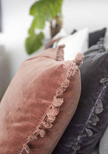 Skandinavisch Französisch Design Kissenhülle Kissenbezug ‚Frans‘ mit Quasten 45 x 45 cm 100% Baumwolle Samt grau Scandi Boho
