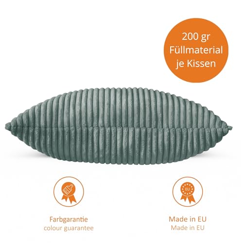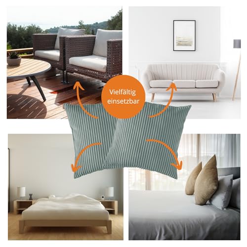 Material: Die Kissenbezüge bestehen ganz einem strukturierten Polsterstoff in Kord Optik mit groben Textilgewebe ganz 100% Polyester. Strapazierfähig, anschmiegsam und gleichzeitig fest