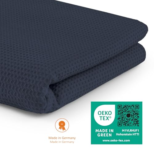 sleepling Kuscheldecke Waffeloptik, Sofadecke, hautsympathisch, temperaturregulierend, 100% Baumwolle, Ökotex Made in Green 100, waschbar, 150 x 200 cm, Navy