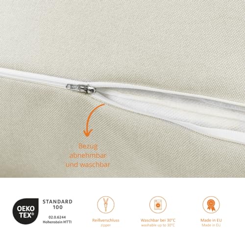 Pflege: Bezug abnehmbar und waschbar bis 30 Grad, lufttrocknen