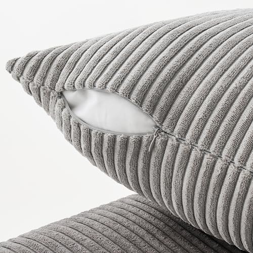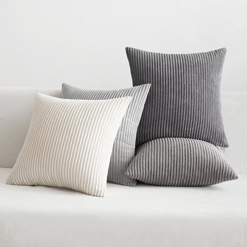 Slozzi 4er Set Kordsamt Kissenbezug Kissenbezüge Kissenhülle Sofakissen Dekokissenbezug Couchkissen Weich für Sofa Schlafzimmer Wohnzimmer Büro, 50×50 cm, Dunkelgrau Serie