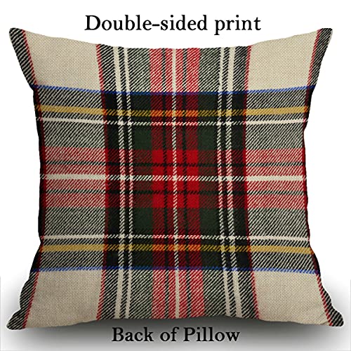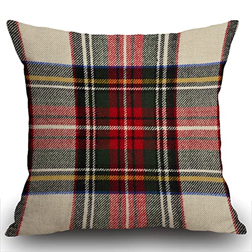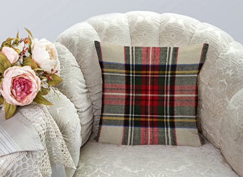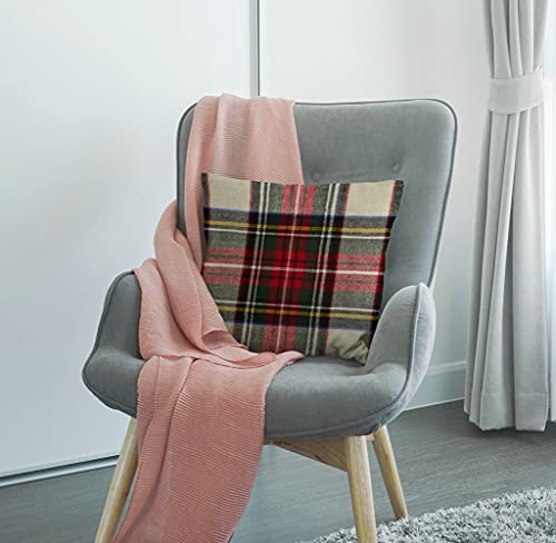 Smooffly Kissenbezug mit Schottenkaro, 45 x 45 cm, Schottenkaro, rot und weiß, Wolle, kariert, quadratisch, doppelseitig, dekorativer Kissenbezug, 45 x 45 cm