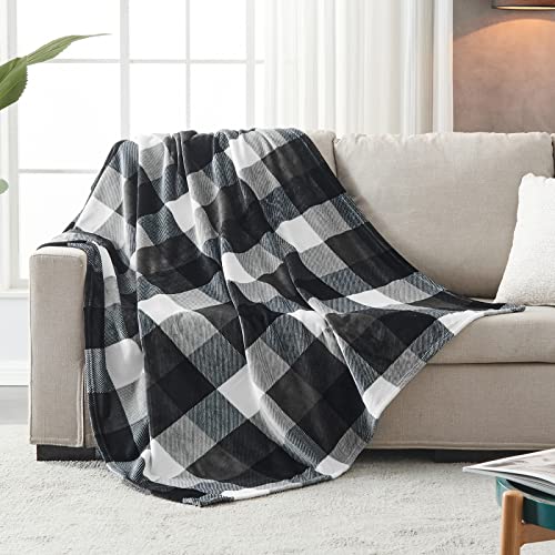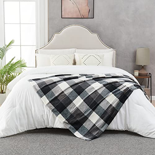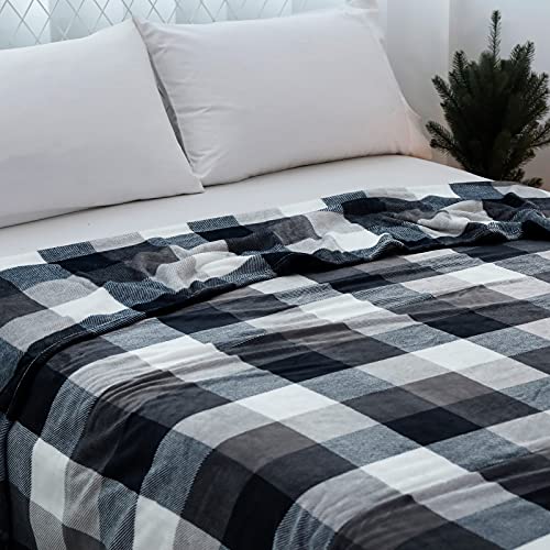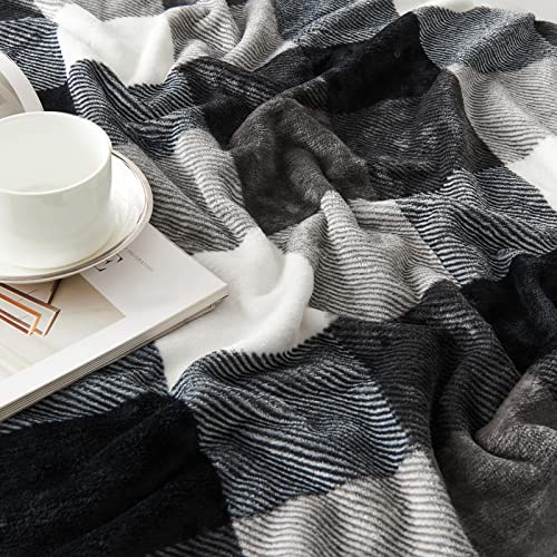 SOCHOW Flanell Fleecedecke 150 × 200 cm, ganzjährig Schwarz/Weiß Karierte Decke für Bett, Couch, Auto