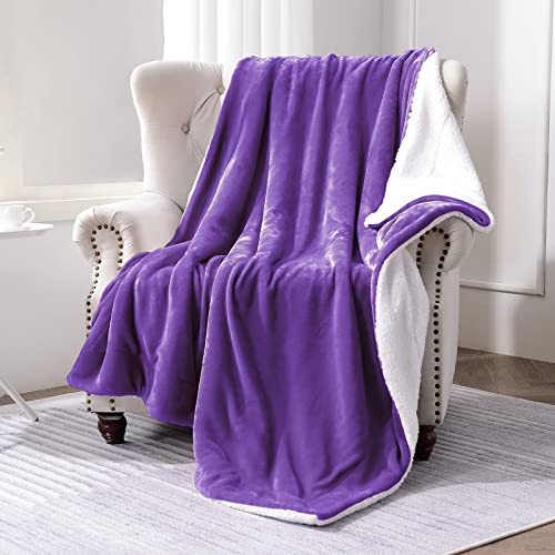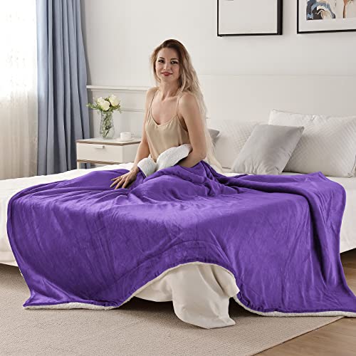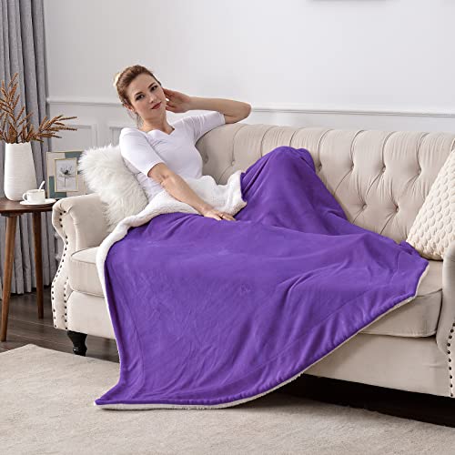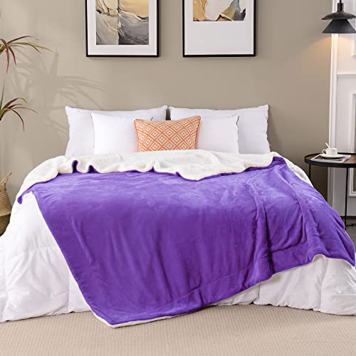 SOCHOW Sherpa-Flanell-Decke, 150 x 200 cm, Violett, Einfarbig, Doppelseitiges Design mit Sherpa und Flanell-Fleece, Atmungsaktiv, Warmhaltung, Winter, Unisex, Heimgebrauch, Camping, Decke