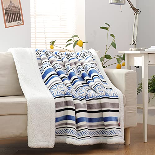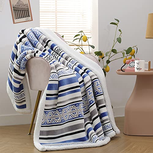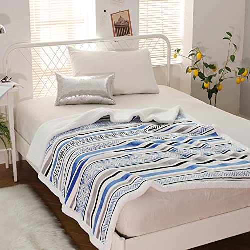 SOCHOW Sherpa Fleece Wohndecken Kuscheldecken, weiche & warme, Streifen Geometrisch Gemustert Plüschdecke für Bett, Sofa und Couch, 150 x 200 cm, Blau