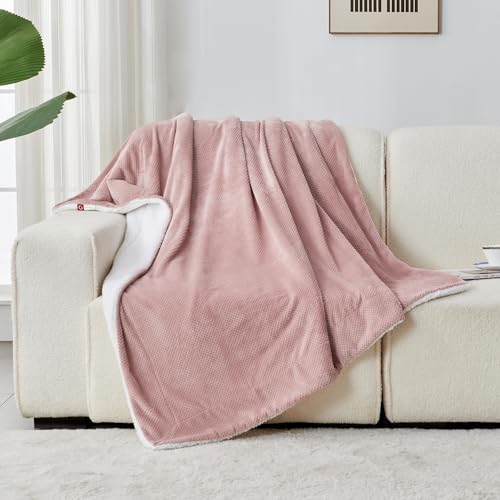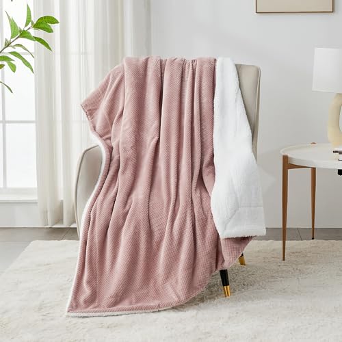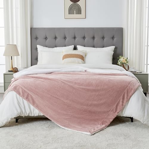 SOCHOW Waffel Sherpa Fleecedecke, superweiche, flauschig warme, leichte, Wendeplüschdecke für Bett, Sofa und Couch