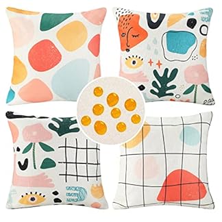Sofakissen 45 X 45 Deko Kissen Kissenbezug Wasserdicht Kissenbezüge Frühling Moderne Morandi Abstrakt Leinen Gartenkissen Couchkissen Zierkissenbezüge für Sofa Wohnzimmer Bett Terrasse Balkon 4 Stück