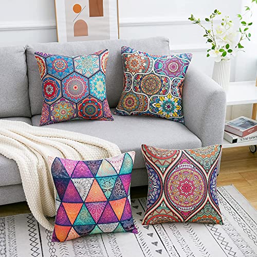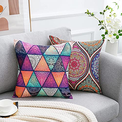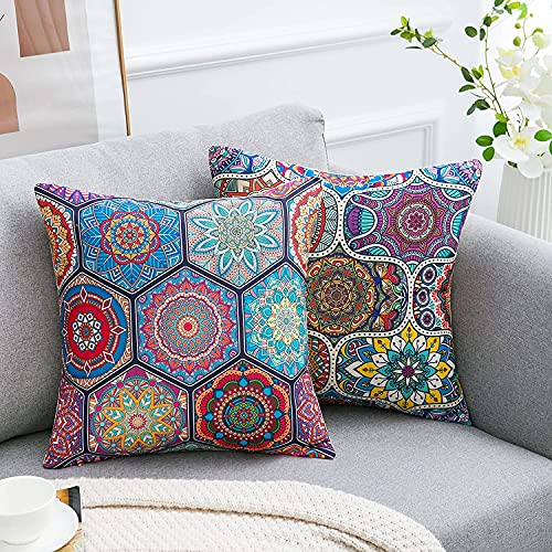 Mandala Muster Design :Die Kombination von mehreren Kissen in Mandala muster bringt Lebendigkeit auf deine Sitzmöbel. Schlichter und frischer Stil, Speziell als Sofakissen zur Dekoration von Wohn- und Schlafzimmer verwendet. Diese Kissenhülle ist perfekt, wenn du in deinem Zuhause für etwas Farbe sorgen möchtest.Die Kissenhülle ist ein perfektes Geschenk. NUR einseitig bedruckt.