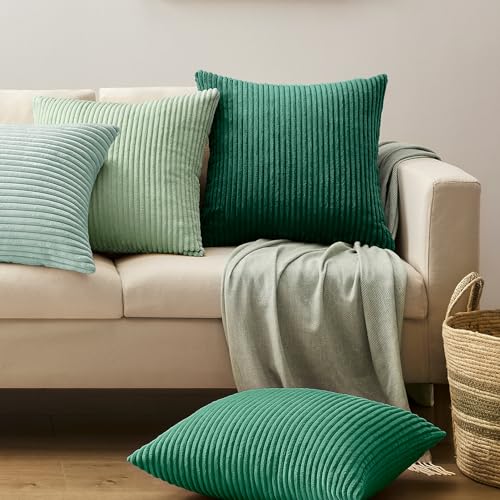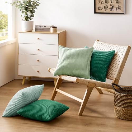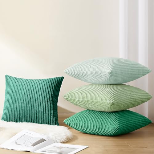Softalker 40×40 cm Kissenbezug Grün Cord 4er Set Bunte Kissenhüllen Kissenbezüge Sofakissen Dekokissen Couchkissen Sommer Deko Aesthetic Room Decor Deko Wohnzimmer Sofa Stuhl Flur Garten Weihnachten