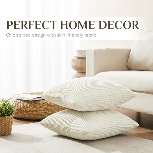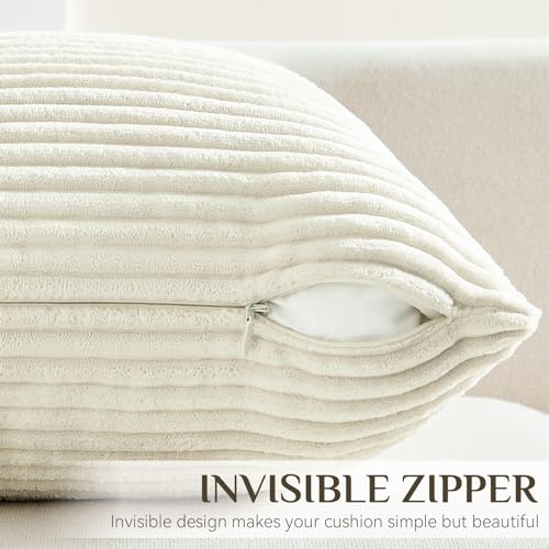 Softalker Kissebezug 45×45 Beige Weiß Cord Flauschig 2er Set Kissenhülle Kissenbezüge Kissen Aesthetic Dekokissen Couchkissen Sofakissenbezüge Modern Deko für Wohnzimmer Schlafzimmer Sofa Stuhl Büro