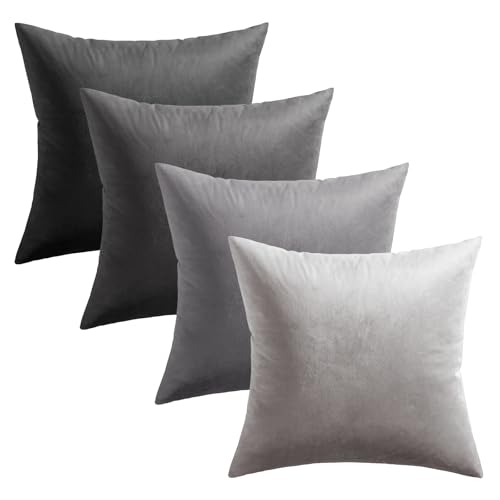 Softalker Kissenbezug 40×40 Grau Samt 4er Set Kissenhüllen Kissenbezüge Sofakissen Couchkissen Dekokissen Winter Herbst Deko Sofa Wohnzimmer Schlafzimmer Party Garten Esszimmer Hotel Cafe Outdoor