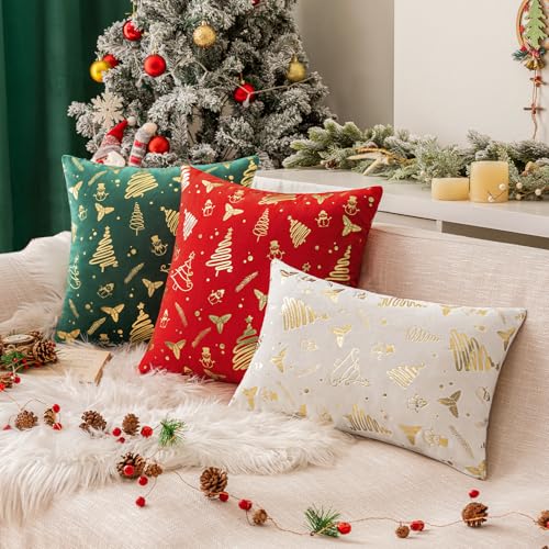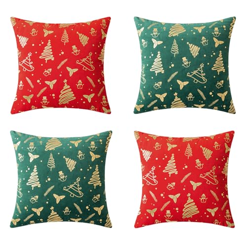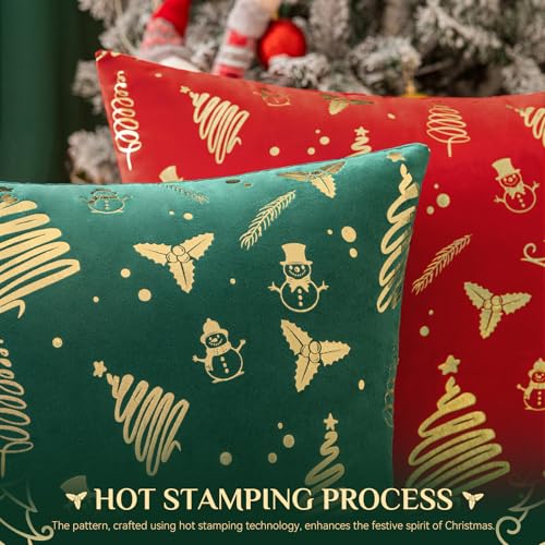 【Luxuriöses Weihnachtsdesign】: Unsere Samt Kissenbezüge sind mit kunstvollen, goldenen Weihnachtsmotiven verziert, darunter stilisierte Tannenbäume, Schneemänner und andere festliche Symbole. Dieses luxuriöse Design bringt eine elegante, festliche Atmosphäre in Ihr Zuhause und verleiht Ihrem Wohnraum eine edle und feierliche Schreiben.Eine hervorragende Geschenkidee für Freunde und Familie da obendrein der Weihnachtszeit.