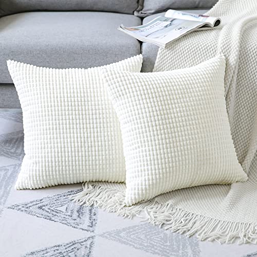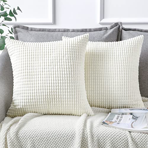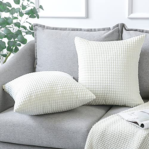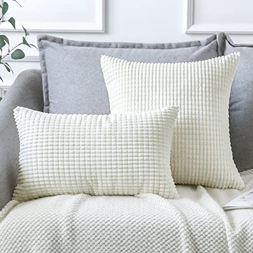 Soleebee 2er Set Kordsamt Kissenbezüge, Weiche Körnig Kord Dekorativ Kissenbezug Sofa Zierkissenbezüge Dekokissen Kissenhülle Set für Couch Schlafzimmer Zuhause Auto Dekor (50x50cm, Cremeweiß)