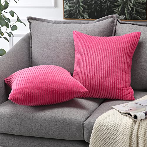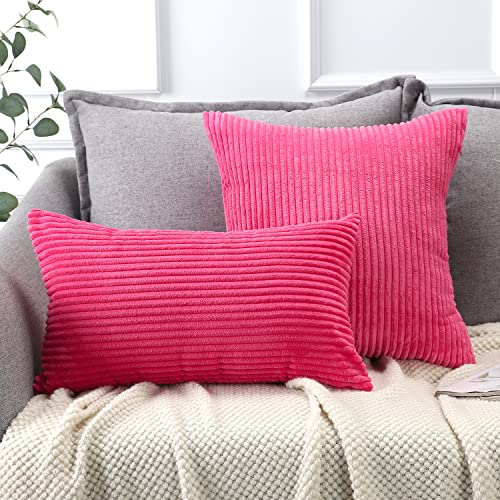 Soleebee 2er Set Kordsamt Kissenbezüge, Weiche Kord Plüsch Dekorativ Kissenbezug Sofa Zierkissenbezüge Dekokissen Kissenhülle Set für Couch Schlafzimmer Zuhause Auto Dekor (40x40cm, Rosenrot)