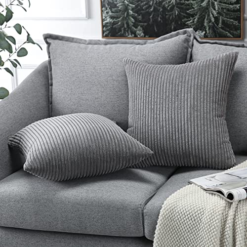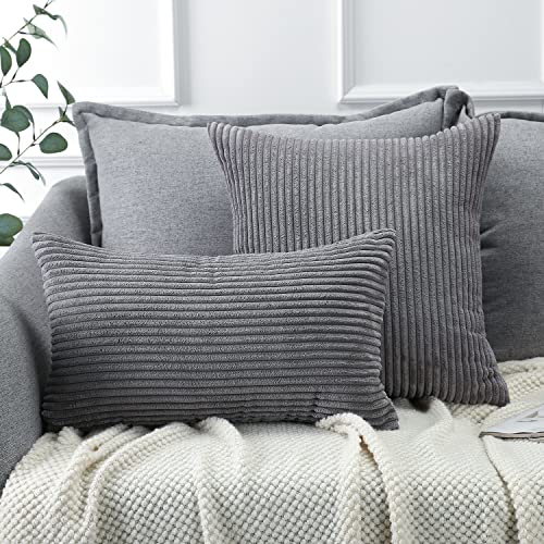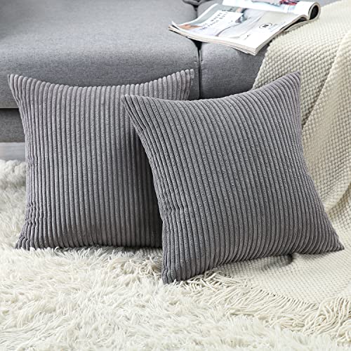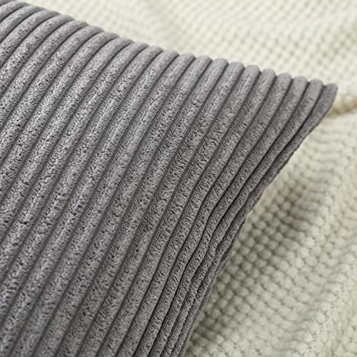 Soleebee 2er Set Kordsamt Kissenbezüge, Weiche Kord Plüsch Dekorativ Kissenbezug Sofa Zierkissenbezüge Dekokissen Kissenhülle Set für Couch Schlafzimmer Zuhause Auto Dekor (50x50cm, Dunkelgrau)
