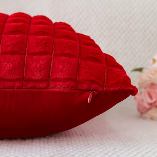 Soleebee 2er Set Plüsch Samt Kissenbezüge, Weiche Künstliche Pelz Plaid Textur Kissenbezug Sofa Zierkissenbezüge Dekokissen Kissenhülle Set für Couch Schlafzimmer Zuhause Dekor (60x60cm, Rot)