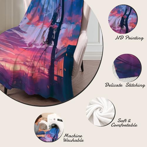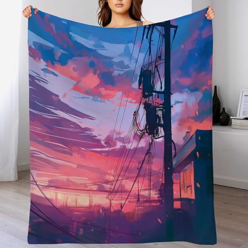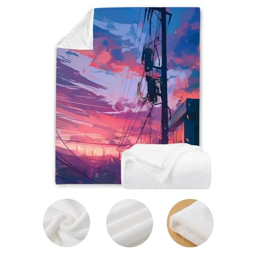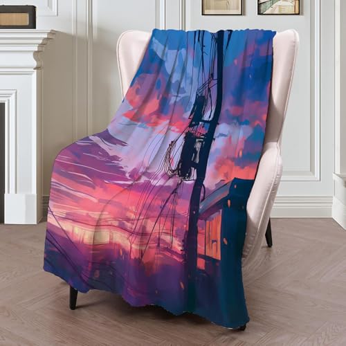 【Angenehm warm】: Wir haben unsere klassische Flanell-Fleecedecke verbessert, damit sie noch weicher gemütlich und hautsympathisch. jetzt mit verbesserter Mikrofaser. Veröffentlichung mit Abendrot Stromleitungen muster auf Oberseite, Rückseite in Weiß. Die exquisiten Farben verleihen dieser Decke ein eleganteres und eleganteres Aussehen und verleihen Ihrem Zimmer ein schickes Ambiente.