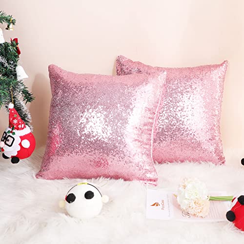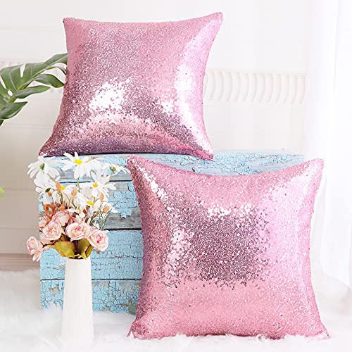sourcing map Pailletten Kissenbezug 40x40cm Deko Kissenbezug 2er Set Dekorativ Kissenhülle Kissenbezüge für Dekokissen Zierkissen Couchkissen Rosa