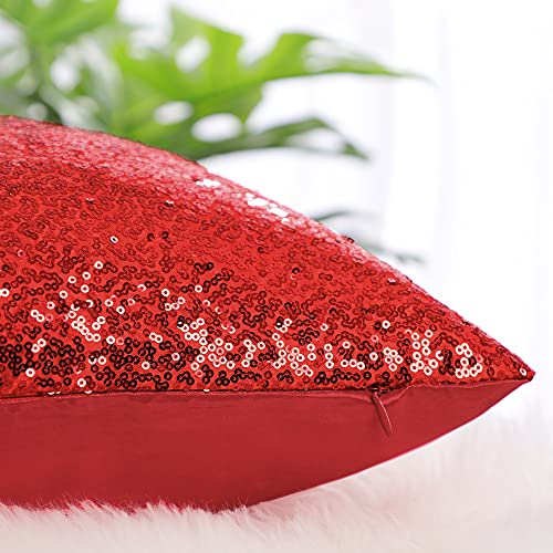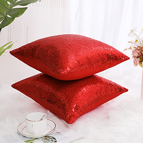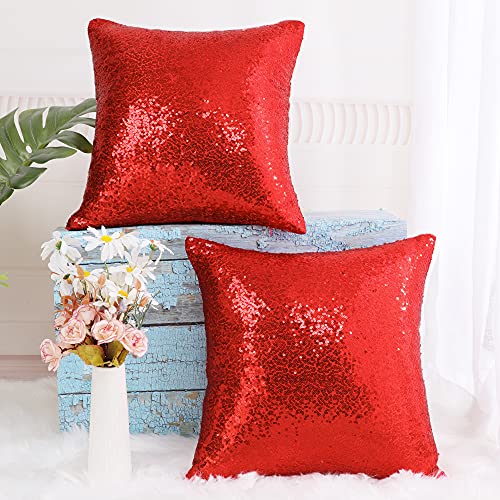 sourcing map Pailletten Kissenbezug 40x40cm Deko Kissenbezug 2er Set Dekorativ Kissenhülle Kissenbezüge für Dekokissen Zierkissen Couchkissen Rot