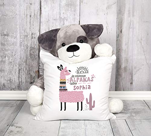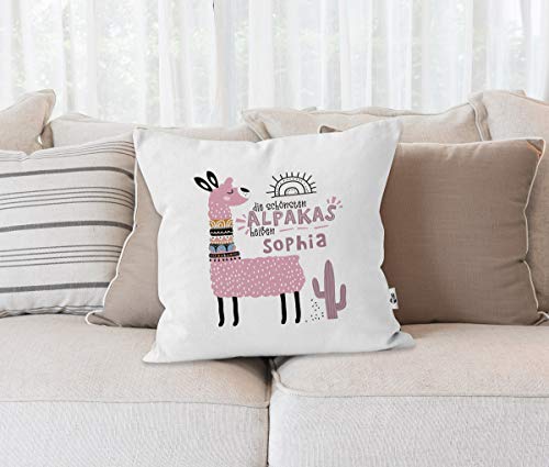 über diesen Kissenbezug mit eigenem Namen freut sich Groß und Klein und Jung und Alt! Gestalte diese Kissenhülle einfach online und bedrucke sie mit deinem Wunschnamen und fertig ist ein ganz persönliches und wunderschönes Geschenk für Alpaka-Liebhaber und für alle, die süße Tiermotive lieben