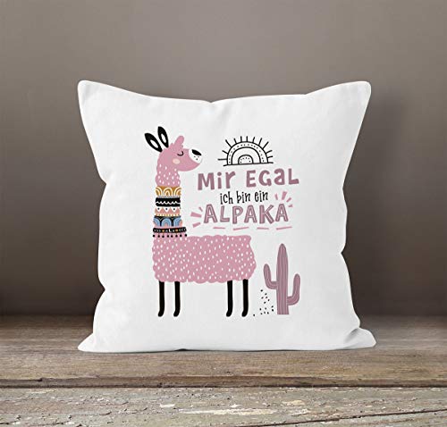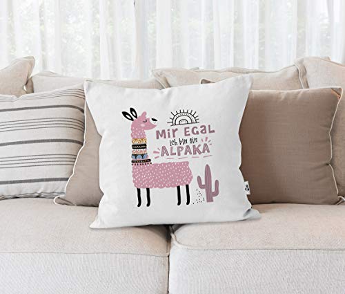 SpecialMe® Kissen-Bezug Mir egal ich Bin EIN Alpaka – Alpaka-Motiv Lama Geschenk Alpaka-Liebhaber Dekokissen Rosa weiß Unisize