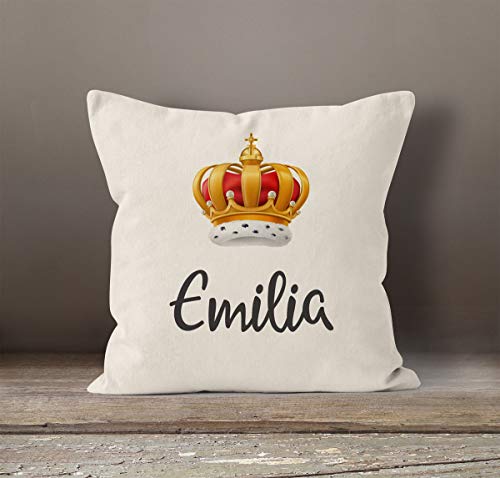Kröne deine ganz persönliche Königin oder deinen ganz persönlichen König mit diesem zauberhaften personalisierbarem Kissenbezug mit eigenem Namen und majestätischem Krone Motiv. Auch eine schöne Geschenkidee zum Valentinstag oder Jahrestag/Hochzeitstag