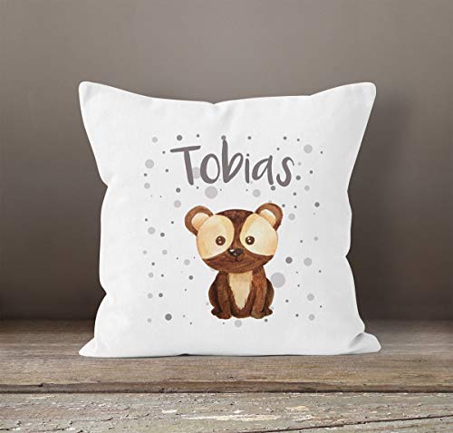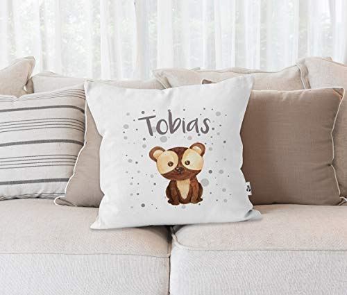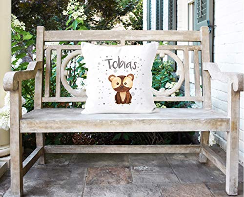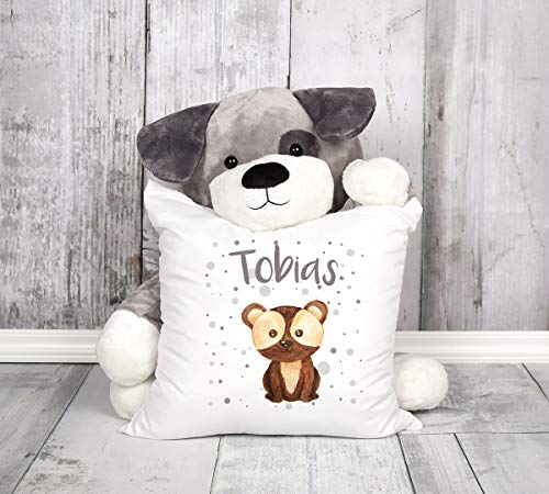 Dieses zauberhafte Namenskissen mit Hunde Motiv und eigenem Namen ist eine kreative Geschenkidee und ein schönes Dekokissen für Kinderzimmer und Babyzimmer.
