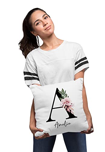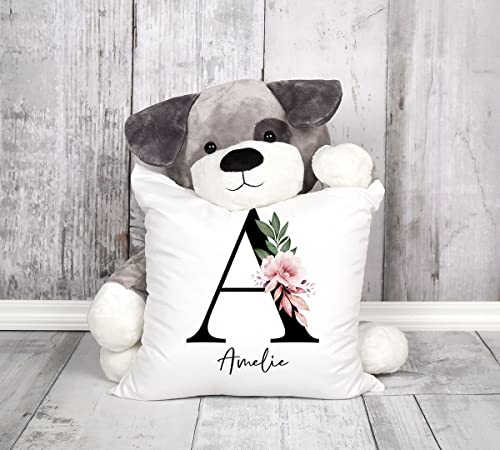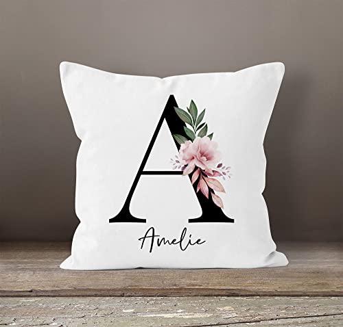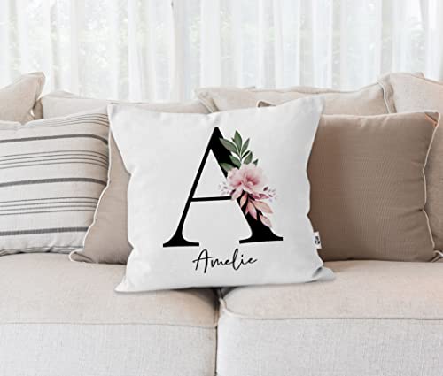 Diese wunderschöne – mit Monogramm und Name- personalisierte Kissenhülle ist ein tolles persönliches Geschenk zum Geburtstag oder zu Weihnachten. Verziert mit zarten Blüten und Blättern ist dieser Kissenbezug überall ein dekorativer Blickfang