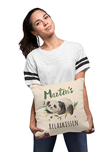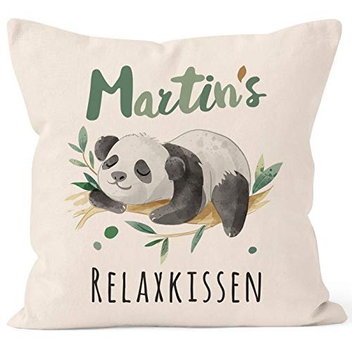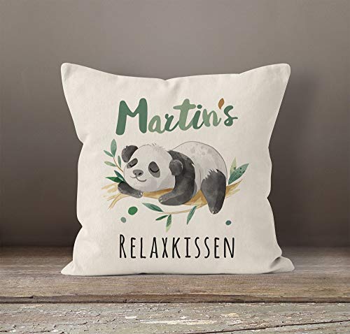 - Motiv: schlafender Pandabär und anpassbarer Aufdruck – „Wunschname + Relaxkissen“
