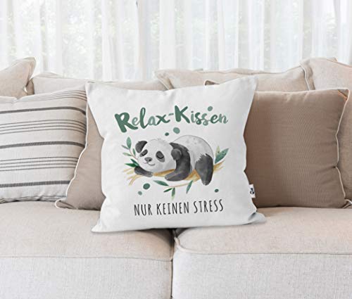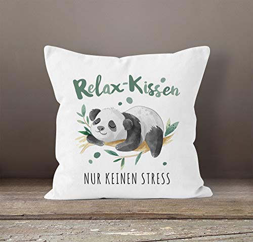 - Motiv: schlafender Pandabär und Aufdruck „Relaxkissen – nichtsdestotrotz kein Stress“
