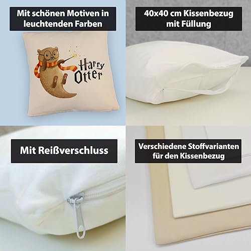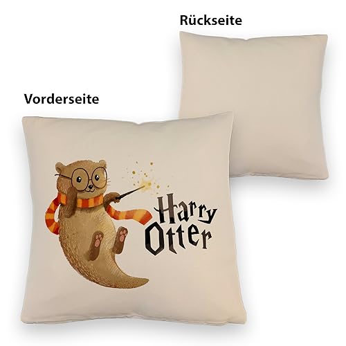 Lieferumfang: 1x Harry Otter mit Zauberstab Kissen mit Leinenoptik mit Spruch