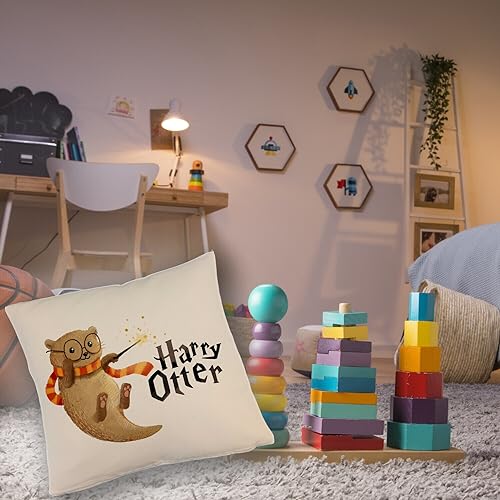 Das Kissen mit dem Harry Otter Motiv ist ein echter Hingucker. Es zeigt einen putzigen Fischotter mit Brille und Zauberstab, ganz im Stil des berühmten Zauberlehrlings. Das Design ist so niedlich, dass es jedes Kinderzimmer in ein magisches Fantasy-Reich verwandelt. Wer braucht schon einen Teddy, wenn man einen zaubernden Otter haben kann?