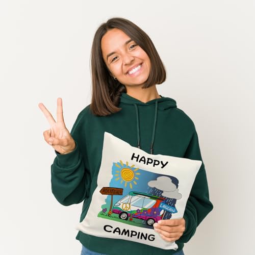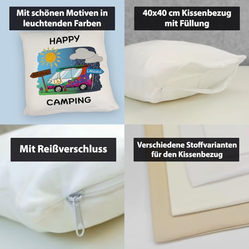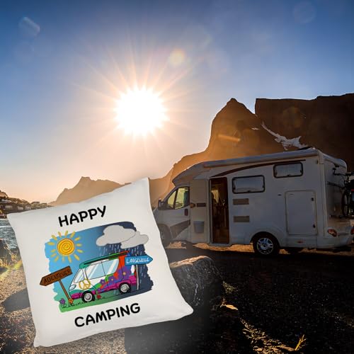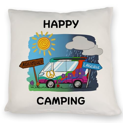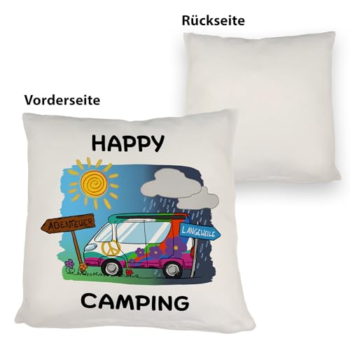 Lieferumfang: 1x Hippie Wohnmobil Kissen mit Spruch Happy Camping