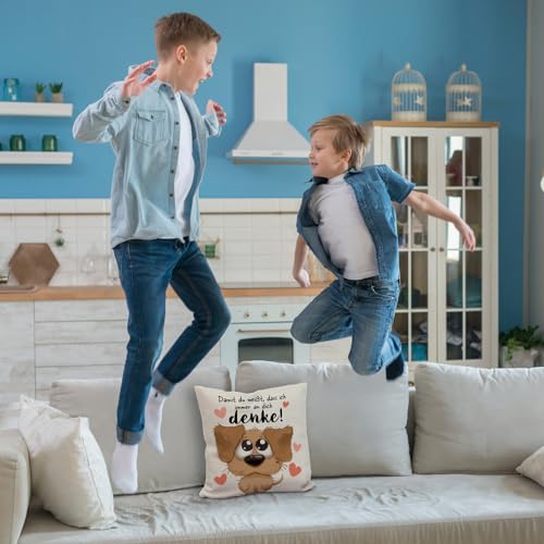 speecheese Hund Kissen mit Spruch Damit du weißt DASS ich Immer an Dich denke EIN süßes DekoKissen für Paare Romantisches Motiv süßer flauschig Frauen Valentinstag kuscheliger Kissen bezug