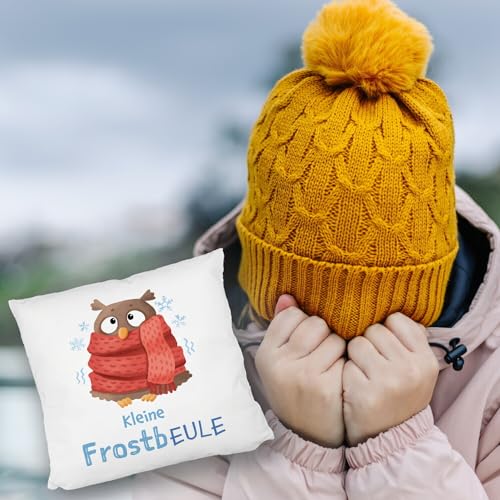 Lieferumfang: 1x Kleine Frostbeule Kissen satiniert mit Spruch niedlicher Eule