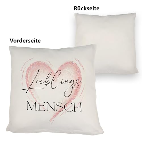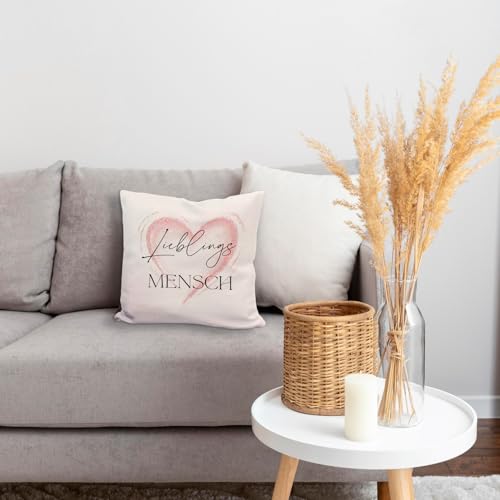 Stellen Sie sich ein kuscheliges Kissen vor, bedruckt mit einem hellroten, gezeichneten Herz und dem Wort Lieblingsmensch. Dieses romantische Kissen ist nicht andererseits ein Hingucker auf jedem Sofa oder Bett, sondern alias ein Ausdruck tiefer Zuneigung und Liebe. Perfekt für alle, die ihrem Lieblingsmenschen eine Freude machen wollen!