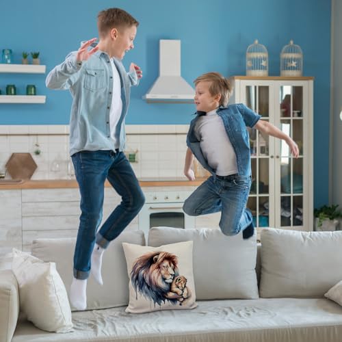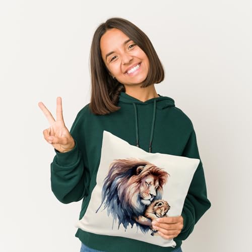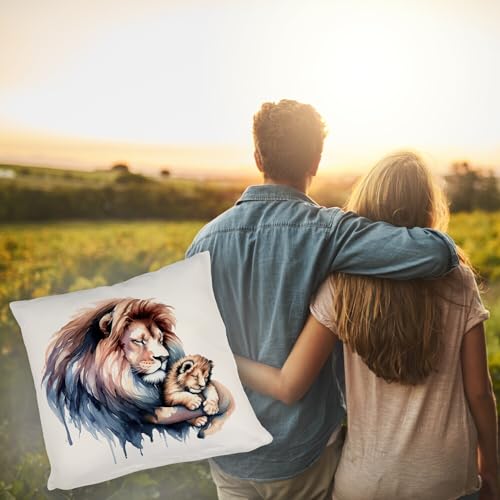 Aufgepasst in der Kuschel-Savanne! Dieses einzigartige Kissen zeigt einen schlafenden Löwenpapa, der liebevoll sein Löwenbaby im Arm hält – Raubtier-Fürsorge auf weichem Stoff gebannt! Perfekt für alle, die tierische Liebe und wohltuenden Schlaf vereinen wollen.